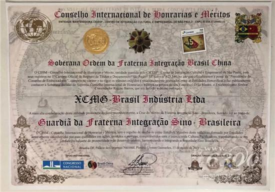2019年8月,纪念中巴建交45周年活动在巴西国会众议院隆重举行。徐工巴西荣获行业唯一“中巴交流最高荣誉勋章”,这是徐工巴西近五年来,坚定当地化战略、赢得当地尊重、获得巴西政府认可的最高奖励。