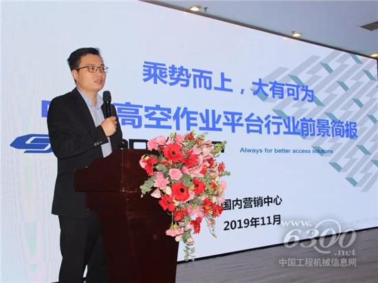 国内营销总监李标志分别从市场环境、2014-2019年国内市场分析、未来机遇与挑战三个方面介绍了国内高空作业平台行业前景。