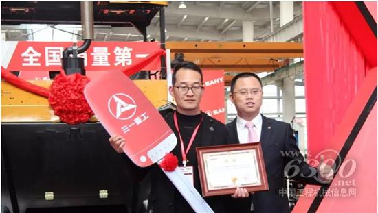 活动现场,三一路机营销公司总经理肖正文在交付定金的客户中抽取了一名幸运客户,隆重地把这台三一重工第6000台摊铺机交付到客户手中。