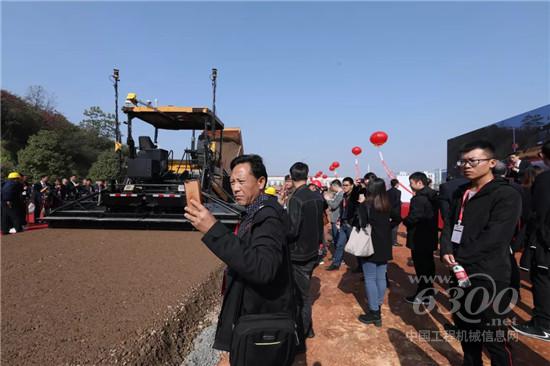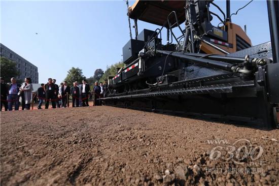 第6000台摊铺机下线仪式后,三一无人驾驶智能摊铺压实设备在产业园内进行了现场施工表演。