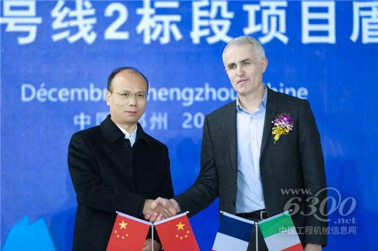 中铁装备总经理卓普周和SALINIIMPREGILO-NGE联营体项目总监WalterGuyonvarch签署工厂验收文件