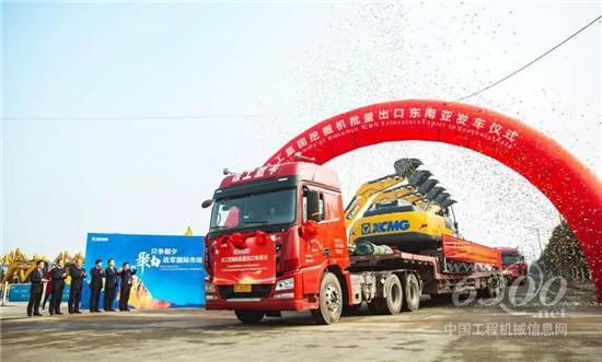 1月18日,徐工挖机批量出口东南亚发车仪式隆重举行。身披彩甲的百余台徐工21吨、37吨等吨级挖掘机正整齐列队,蓄势待发。