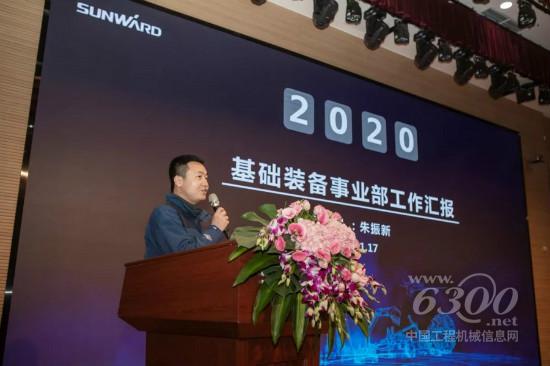 基础装备事业部常务副总经理朱振新、挖掘机事业部常务副总经理范峥嵘、华安基础总经理丁曲,代表各自事业部和子公司,向会议做工作汇报。
