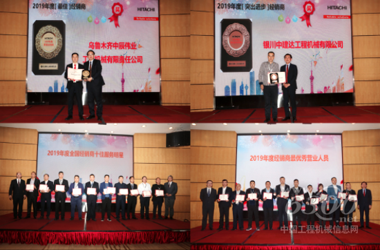 日立建机在中国事业的发展得益于全体经销商的支持,更与一线工作人员的努力密不可分。作为此次会议的重头戏,日立建机对2019年表现优异的经销商及员工进行了表彰,分别颁发2019年度经销商“最优秀营业人员”、“十佳服务明星”、“日立建机高级服务技术专家”等多个个人奖项,以及“突出进步经销商”、“先进经销商”、“最佳经销商”企业奖项,在场的嘉宾共同见证了激动人心的荣誉时刻。