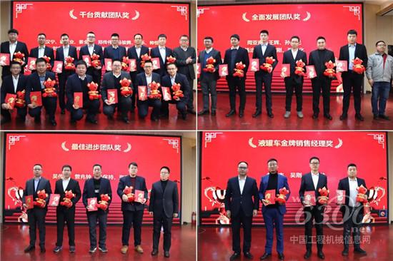 总结之后,是颁奖仪式,对2019年的突出个人和团队进行了隆重表彰,在大家共同见证下,公司领导分别为山东区域貟瑞杰,四川区域吴刚,云南区域的郭海龙颁发了“液罐车金牌销售经理奖”;为福建团队颁发了“最佳进步团队奖”、为贵州团队颁发了“全面发展团队奖”,为河南和山东团队颁发了“千台贡献团队奖”,山东团队获得公司年度销量和任务完成率的双料冠军。