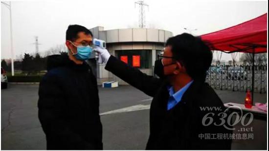 △中联重科土方机械分公司员工在入园口接受体温检测
