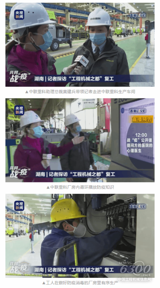 2月16日,央视新闻记者实地探访中联重科,就疫情期间备受关注的企业复工复产、疫情防控等情况,进行了半小时直播报道。网友点赞:中联加油!