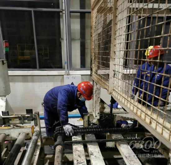 一线抢修保生产,不松不懈勇担当在做好防疫工作的同时,保生产成了徐工汽车支援战“疫”的重要任务。所有的生产工作者们都按下了“加速键”,党员干部冲锋在前,为了同一个目标奋斗不懈,咏出了一首动人的奋斗者赞歌。2月21日,总装分厂轮胎合成线故障,三名设备维修人员到达现场紧急排障。由于轮胎提升机的位置特殊,排障人员登上6m高空进行排查,发现一个直径80mm,长2.2m的轴体断裂造成线体停线。