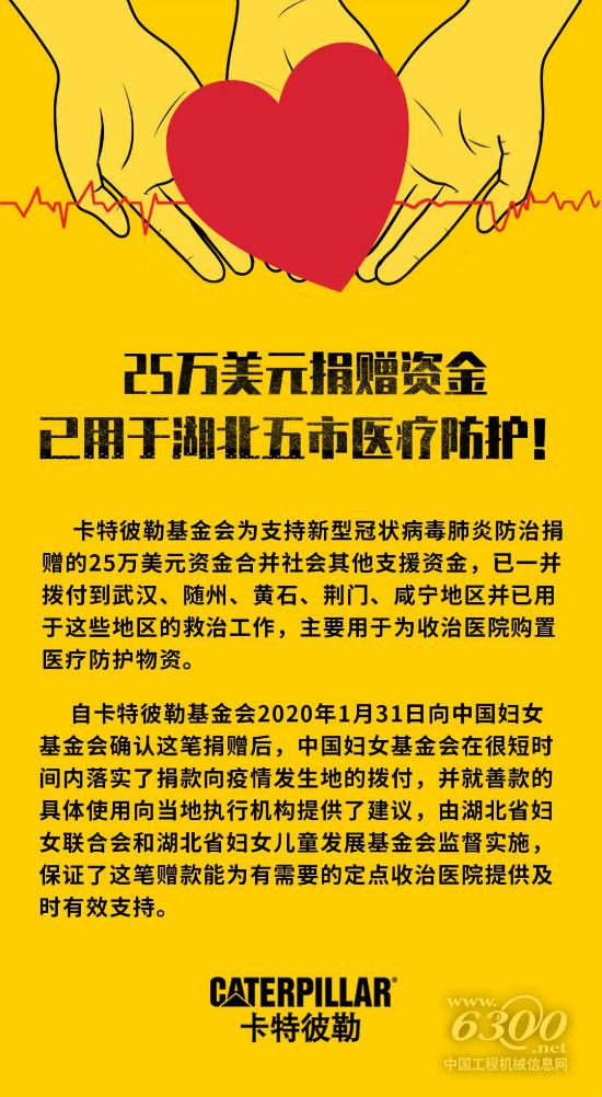 卡特彼勒:25万美元捐赠资金已用于湖北五市医疗防护!