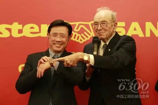 当天的发布会上,普茨迈斯特创始人卡尔·施莱西特,与三一集团董事长梁稳根互换手表。在追求理想的道路上,双方相互找到了志同道合的伙伴。