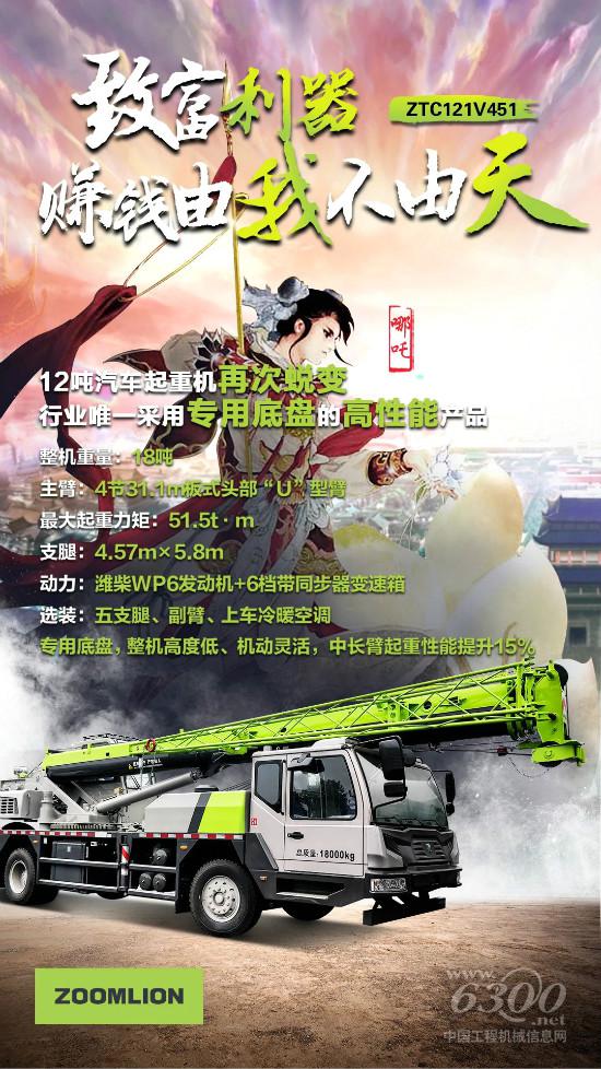 导语:中联重科为中国12吨汽车起重机市场打开高端路线,推出ZTC121V451起重机新品,为客户带来了更有质量保障且富有灵性的高端选择。