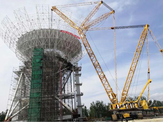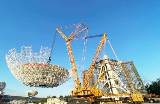 为了克服风速对吊装作业的影响,担此重任的徐工XGC28000“稳扎稳打”,采用1300吨双钩头,设计16个吊装点,同时增设调平装置,将反射体水平偏差控制在1厘米以内,通过均衡设备吊点之间受力,保证结构变形在合理范围内。