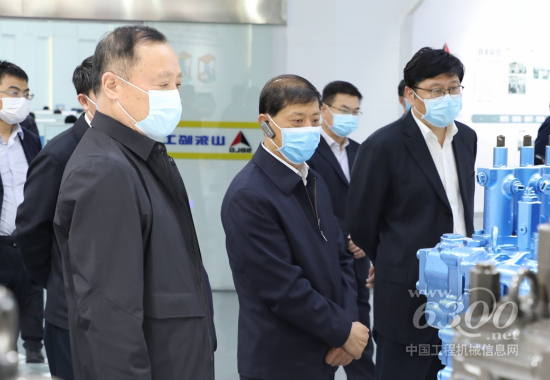 在核心零部件展区,得知临工是国内唯一能够批量生产大中型挖掘机主控阀的主机厂家时,王书记十分高兴,他勉励山东临工坚持创新驱动发展战略,取得更多关键核心技术突破。