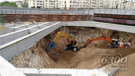 此外,由于基坑距离重要市政管线和居民房屋较近,为了极大限度降低爆破震动和噪声对周边居民的影响,经过研究,该站引进山东临工E6500F大型液压破碎锤挖机进行机械开挖代替爆破作业。