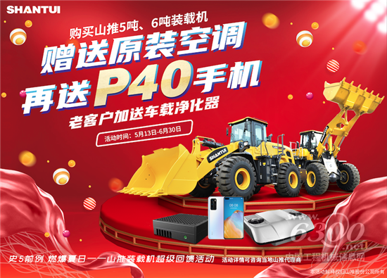 凡5月13日至6月30日购山推5吨、6吨装载机的客户朋友,除赠送设备原装空调外,再加送华为P40手机1部,已经拥有山推设备的老客户朋友们还可享有特殊福利:在享有上述优惠的基础上,再获山推股份加送的车载净化器1台。