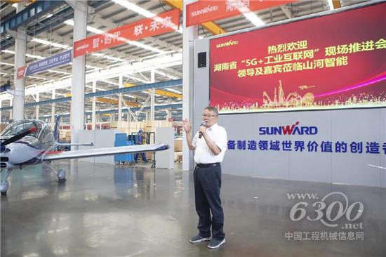 山河智能董事长何清华致欢迎词,并针对企业的“5G+工业互联网”与生产、制造、营销等的深度融合情况做了精彩演讲。