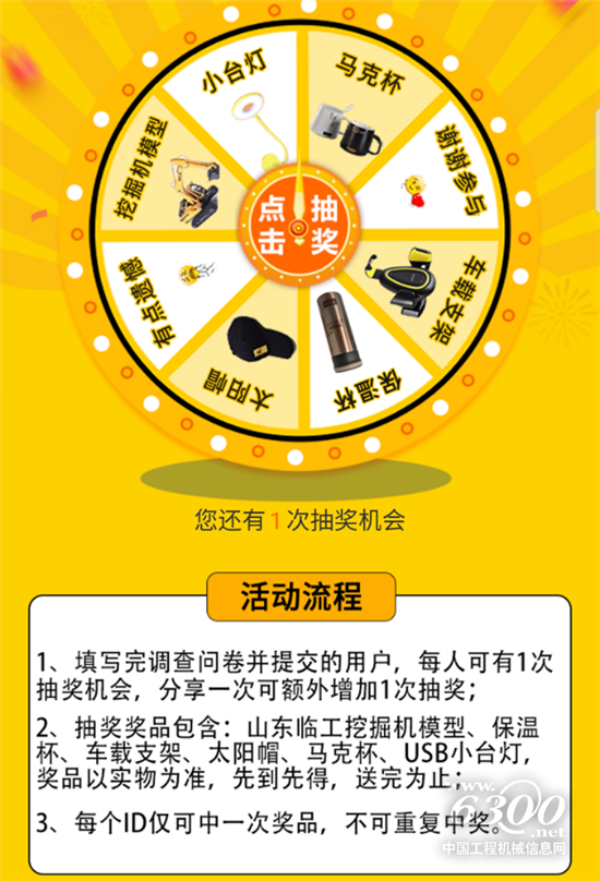 3、填写完毕后可获得1次大转盘抽奖,每人只有一次填写问卷的机会,请认真填写,分享一次可额外获得1次抽奖机会(仅1次);