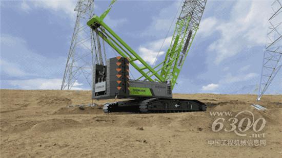 ▲中联重科ZCC1800H履带起重机正在架设输电线路铁塔