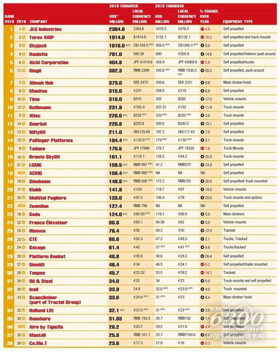 6月11日上午,英国KHL集团旗下世界知名高空作业平台杂志《Access International》发布“2019全球高空作业平台制造企业20强”榜单(Access M20)。
