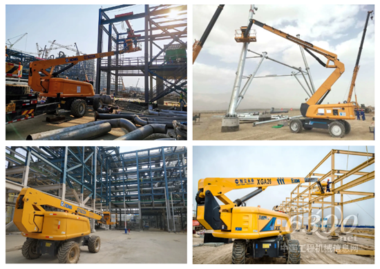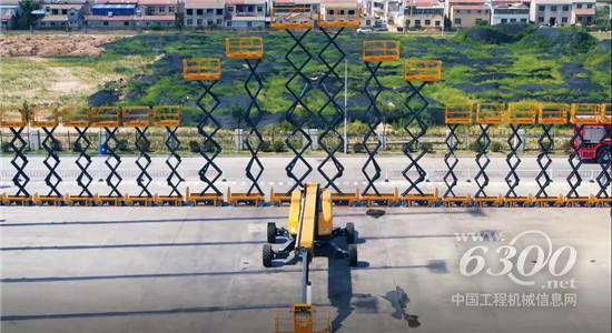 6台XGA26曲臂式高空作业平台作为本次直播的主打产品,依次交替举臂,尽显大跨距的优势,其蟹形转向功能,能够帮助车辆轻松避开前方的障碍物,实现整车斜线平移。
