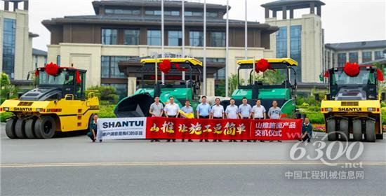 6月13日,山推成套路面产品交机仪式在河南举行,交付的设备包含数台SR30T-3胶轮压路机和SRP90S摊铺机,山推股份副总经理魏相圣出席并将钥匙交付给客户。营销公司、河南片区,河南山推等单位相关负责人共同参加。