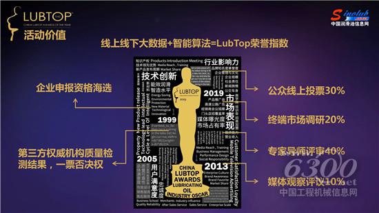 LubTop2019总评榜评选活动以技术创新、市场表现、用户满意度、行业影响力等四大维度为品牌评价体系,在企业申报资格海选,第三方权威机构质量检测结果(一票否决权)基础上,通过线上用户投票(占比30%)、专业市场调研(占比20%)、专家导师团评审(占比40%)、媒体观察评议(占比 10%)流程,最后以线上线下大数据+智能算法产生LubTop荣誉指数,评选出“中国润滑油十大品牌”等行业标杆,在“云颁奖”盛典隆重张榜。