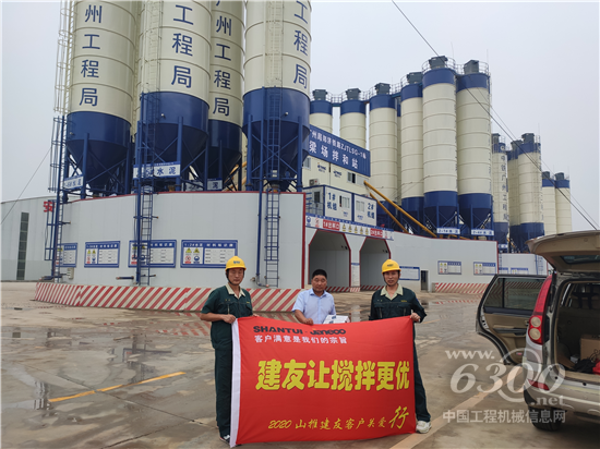 7月22日,山推建友“客户关爱行”走访小组第三站来到助力济郑高铁建设的济南长清工地,对3台SjHZS180-3R混凝土搅拌站使用情况进行现场走访。