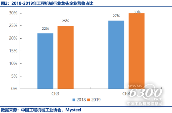 据中国工程机械工业协会统计数据,2019年纳入统计的311家工程机械行业企业,实现营收6681亿,同比增长12%。其中,前3家企业(三一、徐工、中联重科)共计实现营收约1782亿,占整个行业营收的27%;前4家企业(三一、徐工、中联重科、柳工)共计实现营收1974亿,占工程机械行业总营收的30%。工程机械行业财富向龙头企业聚集效应明显。