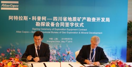 阿特拉斯•科普柯集团是2010年上海世界博览会瑞典参展组委会指定合作伙伴之一。2010年5月7日,阿特拉斯•科普柯与四川省地质矿产勘查开发局勘探设备合同签字仪式在上海举行。作为全球影响力最大的工程机械中文互联网媒体,中国工程机械信息网( ycsqzl88.com)应邀对活动全程进行报道。