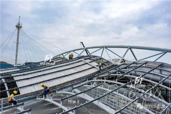 汕头游泳跳水馆屋顶,经过近20年的日晒风吹,其金属屋面构造层部分檀条防腐涂层存在开裂、脱落和锈蚀的现象,屋盖金属面板、保温材料、防水材料、金属穿孔底板、玻璃天窗及其托架也因年久而老化,无法满足相关体育赛事的需求。中建八局在保留原有设计外观的基础上进行改造升级。游泳跳水馆作为我市标志性建筑之一,其“贝壳卧滩、风帆临海”的精美造型寓意深长,远远望去,它像一艘鼓满风帆的航船停泊在充满生机的海湾,整个建筑蕴含极高的科技含量及设计匠心,屋顶拆除工作计划在本月内完成。