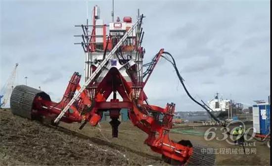 荷兰IHC Merwede推出的世界首台四履带式海底挖掘机,是一款专门研发用于狭窄水域和为海上风场铺埋线缆的大型机械。