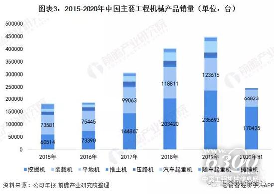 注:装载机和挖掘机数据截止到2020年6月,摊铺机数据截止到2020年5月,其余产品数据截止到2020年一季度。