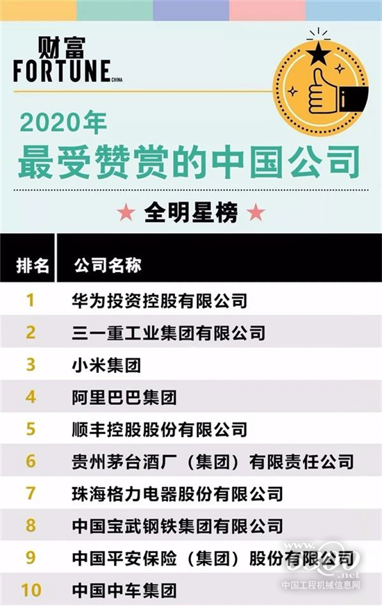 近日,《财富》(中文版)发布了2020年度最受赞赏的中国公司榜单,共有53家企业上榜。华为在本次排行中居第一,紧随其后的是三一重工,而另外三家进入前五的都是科技类企业在各个行业的代表:小米、阿里巴巴、顺丰。《财富》(中文版)表示,中国的领先的民营企业从一股不可忽视的力量,走出了一条完整的可持续发展曲线,逐渐成长为驱动全球经济发展的主流力量。