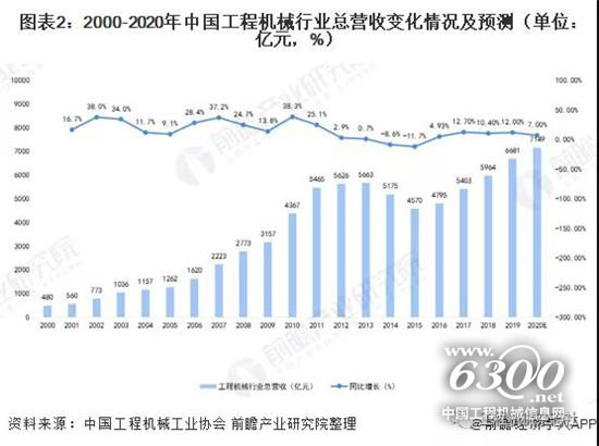 据中国工程机械工业协会在2020年9月发布的数据,全国12家重点工程机械企业完成销售收入2356亿元,同比增长了17.3%,全行业销售收入约为4000亿元;预计2020年行业营收增幅将达7%至8%。根据协会的相关数据和发展现状,前瞻预测2020年我国工程机械行业总营收将达到7149亿元左右。