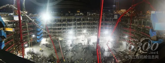 现场高峰时期,5台三一62米泵车参与基础底板的施工,60个小时,昼夜不停,三一设备完美施工,赢得客户赞赏。