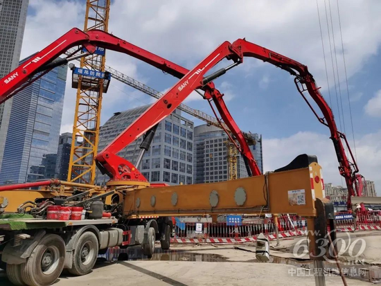 超高层楼宇施工难度大,而基础底板的一次性连续浇筑,关系到大楼的基础,质量要求非常高。该项目约4.5万方大底板采用的是高标号C50P10混凝土,需60个小时连续浇筑,对泵送设备要求极高,不能出现堵管、高温等其他故障。