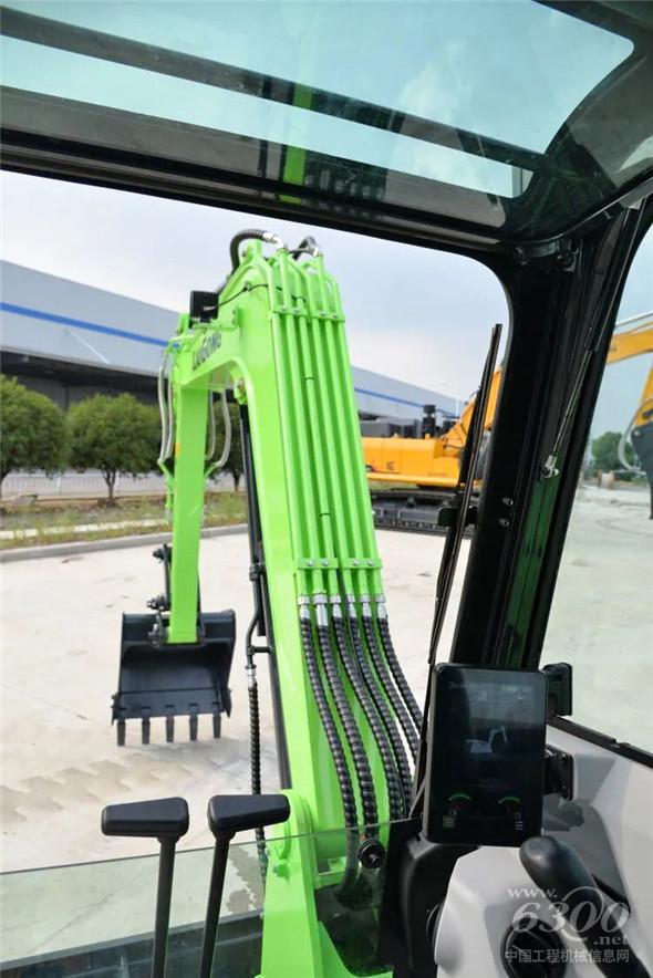首先,现车在外观上较第一代发布的白色电动挖掘机设计有明显的变动,但还是保留了F系列家族式的设计理念,相比老款来说显得也更加动感、霸气了一些!罕见的绿色给人绝对的视觉冲击,让眼前一亮的同时,更多的还是惊艳!