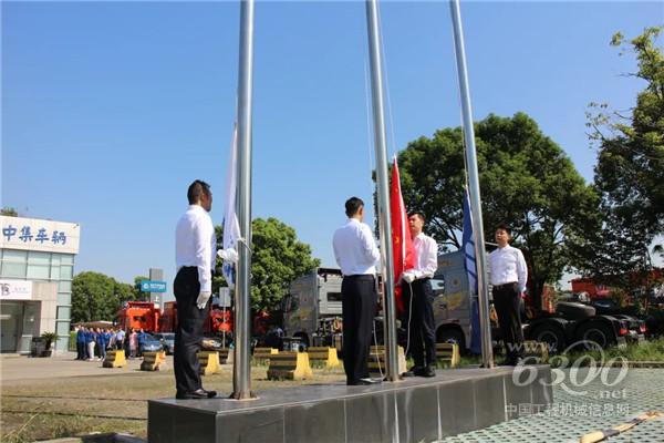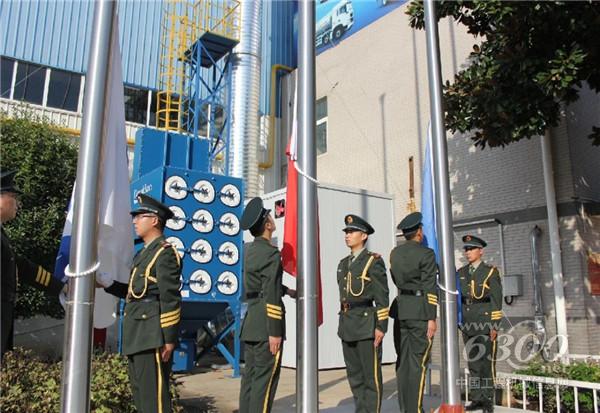 伴随着雄厚、豪迈的《中华人民共和国国歌》和《中集之歌》,五星红旗和中集旗帜先后冉冉升起,随风飘扬,在场的每一个人昂首挺胸,向国旗和中集旗行注目礼,满怀对祖国崇高的敬意和对中集无限的祝福。