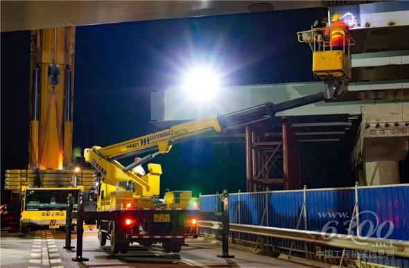 徐工随车GKS21肩负桥梁加固、高架桥下方设备安装等,一系列繁琐复杂的既定动作。更重要的是,为了保证早高峰期间107国道正常通行,各项工作的衔接必须精确到以分钟计,这对高空作业的稳固性、精准性提出极高要求。