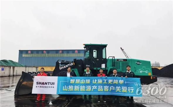 在堆积着满满煤料的某港口上,天刚亮,整个港口就开始忙碌了起来,数台山推纯电装载机不停地在料堆之间往返。在工作现场,关爱行团队成员与客户一道,共同见证着山推新能源产品的“飒爽英姿”。