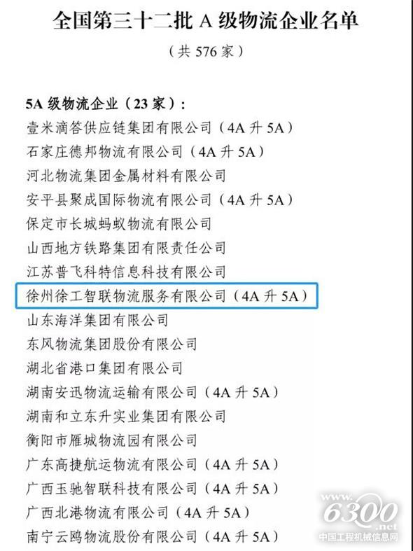 05 徐工再获国家最高荣誉 “全国5A级物流企业”