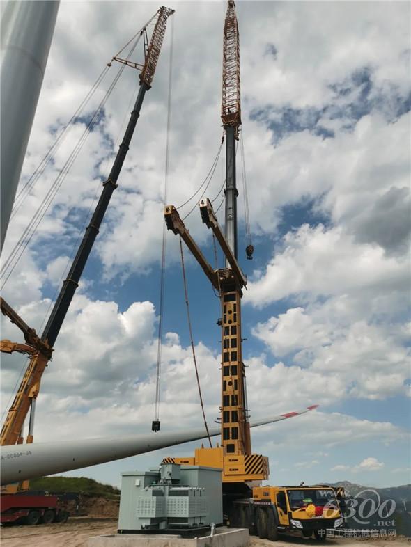 在山西大唐浑源凌云口风电项目的施工现场,高塔筒,大叶片,山高坡陡,路面狭窄,面对着一排排亟待检修的3.0WM风机以及崎岖复杂的施工地形,徐工两大“擎风勇士”XCA1600和QAY650A组团出击。