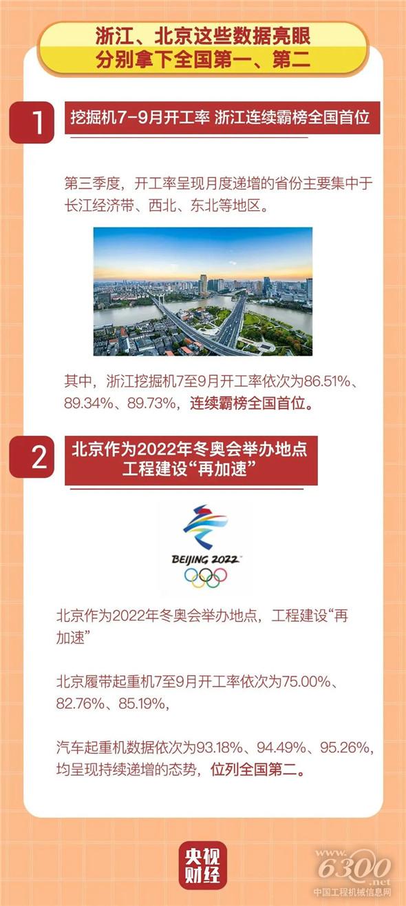 10月18日,北京冬奥会火炬在希腊古奥林匹亚小镇开始传递。距离北京2022年冬奥会开幕还有一百多天,北京、河北作为两大举办地点,各项工程建设工作“再加速”。北京履带起重机7至9月开工率依次为75.00%、82.76%、85.19%;汽车起重机数据依次为93.18%、94.49%、95.26%,均呈现持续递增的态势,位列全国第二;