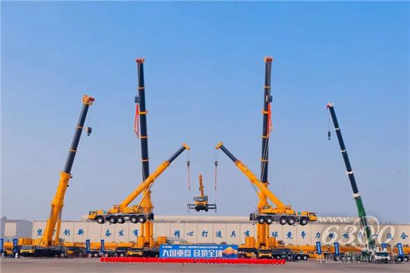 现场,包含超级起重机在内的一系列新产品批量交付给客户,投身全球重点工程建设