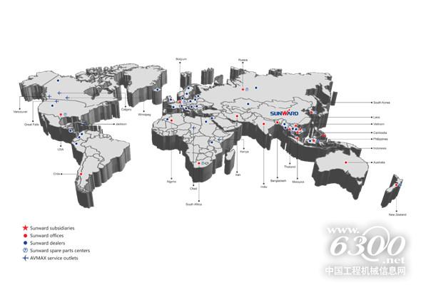 据了解,山河智能早在2002年就开始了国际市场布局,如今,代理商遍布全球。截止目前,印有SUNWARD商标的产品已经销往全球100多个地区和国家,公司不断加大投入,在海外已成立了十多家子公司,与180多家代理商一起建立了遍布全球的营销服务网络和配件仓库,让客户没有后顾之忧。