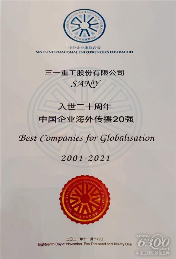 11月18日,2021中欧企业家峰会青岛论坛盛大开幕。会上,凭借强大的国际影响力,三一重工荣膺“入世二十周年 中国企业海外传播20强”。