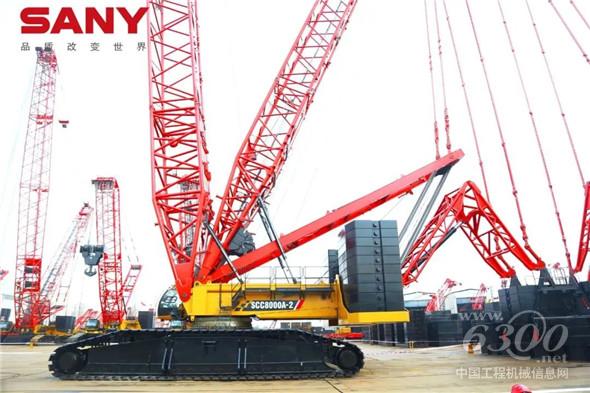 其中,新款800吨级履带起重机SCC8000A-2,在宽臂技术加持下,同时拥有单臂的拆装效率、双臂的起重性能,满足90~110m山地风电、150m平原风电、5MW海上风电吊装需求。