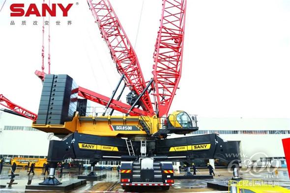 SCL8500则为900吨级全路面桁架臂,携带上装转场,较履带吊省4台车、10小时,满足90~110m山地风电、160m平原风电吊装需求。