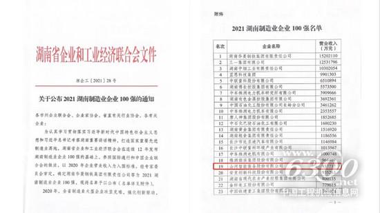 12月14日上午,2021年湖南企业家活动日暨企业家年会在长沙举行。会上发布了2021湖南企业100强、湖南制造业企业100强和服务业50强榜单。其中,山河智能荣登2021湖南企业100强第54位、湖南制造业企业100强第19位。