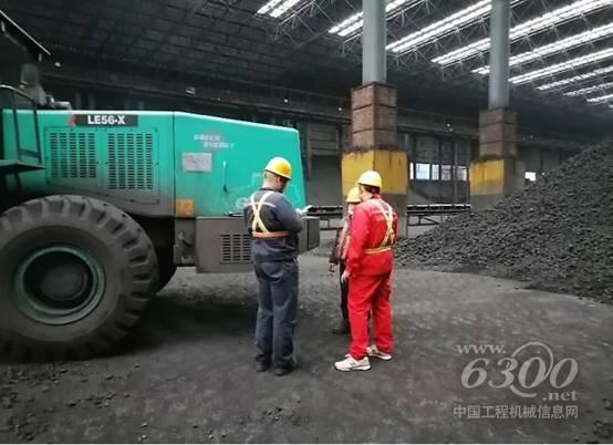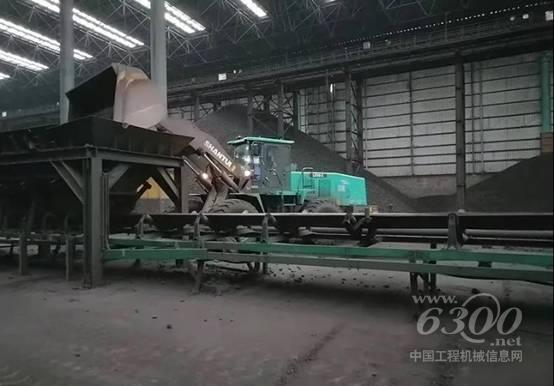 钢厂现场设备负责人张经理带领服务人员进入了炼钢炉焦煤料区,在现场,司机熟练有序地将堆积如山的焦煤向传输带铲运。张经理介绍道:“炼钢炉全年24小时不停歇,考验电动装载机的续航能力是关键,而山推纯电装载机正好可以满足我们的工况。”